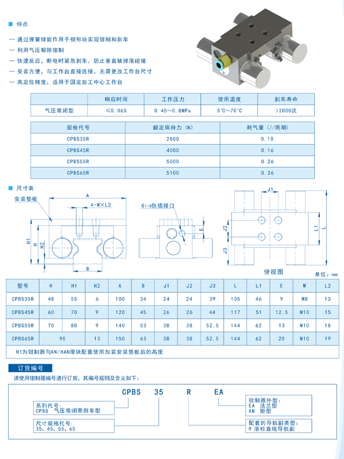 氣壓常閉帶剎車鉗制器