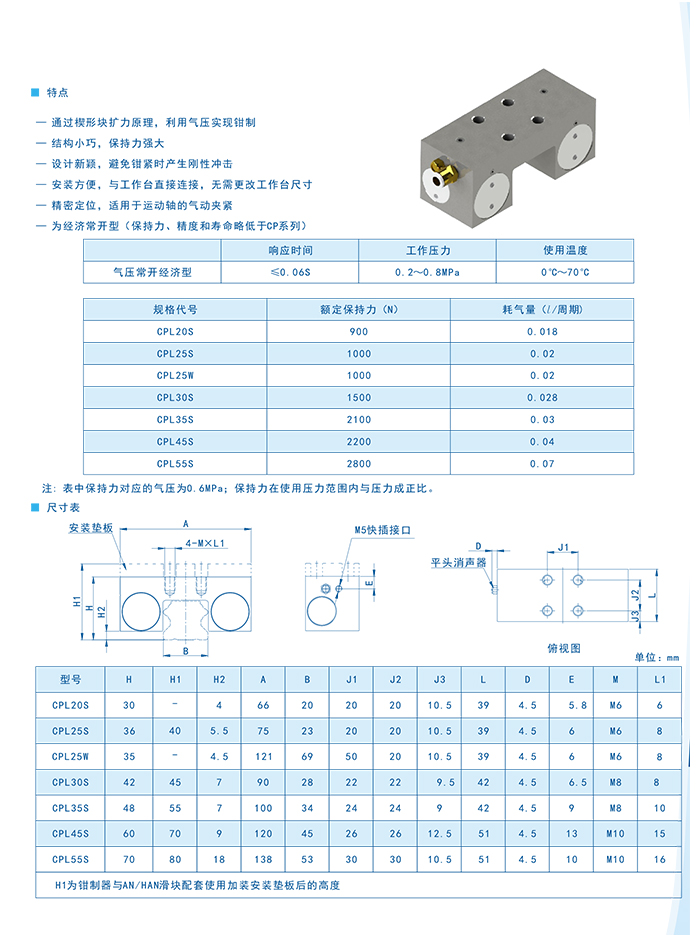 氣壓常閉帶剎車鉗制器